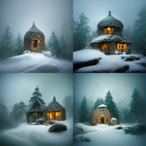 Il primo comando che è dato è stato “stone house in an enchanted forest during a snowstorm” (una casa in pietra in una foresta incantata durante una tempesta di neve), ed i risultati sono questi.