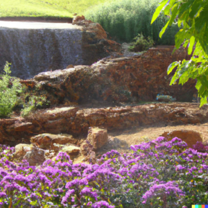 Il secondo comando è stato “peaceful garden with violet flowers and a waterfall” (un tranquillo giardino con fiori viola ed una cascata).